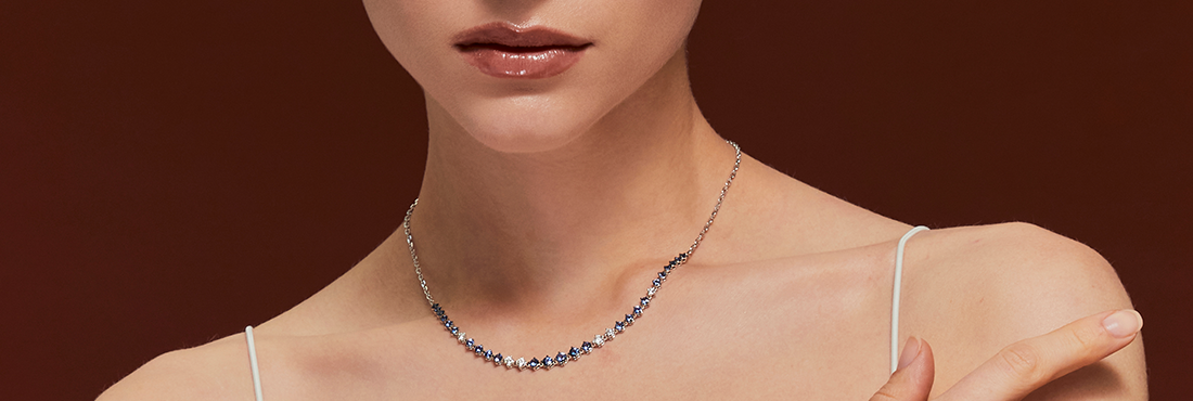 Collar de oro blanco con zafiro.