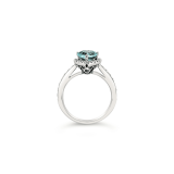 Anillo de oro blanco 18k con 1 agua marina de 1.5 cts y 33 diamantes corte brillante.