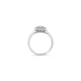Anillo de platino forma de octágono con 1 diamante corte brillante central de 0.20 cts y 18 diamantes corte brillante.