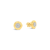 Aros de oro amarillo 18k tipo botón con 22 diamantes corte brillante.