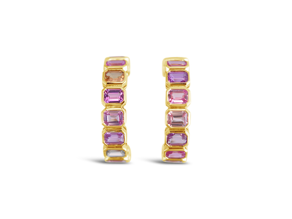Aros de oro amarillo 18k con 20 zafiros de colores