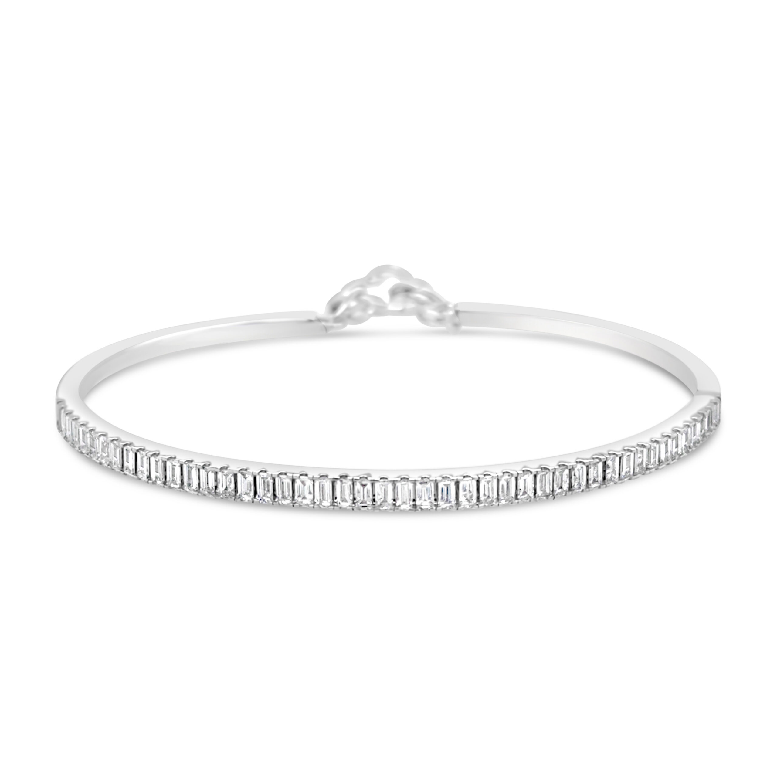Pulsera de oro blanco 18k con 46 diamantes corte baguette y 1 rubí en el cierre