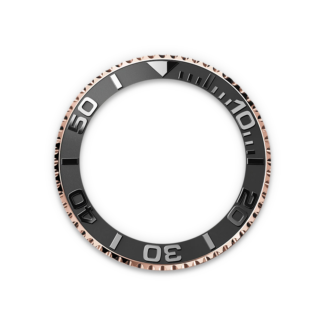 El bisel giratorio bidireccional graduado 60 minutos en relieve del Yacht‑Master está realizado íntegramente en metal precioso o dotado de un disco Cerachrom de cerámica de alta tecnología. Los números y graduaciones pulidos en relieve destacan claramente en el fondo mate pulido con chorro de arena. Este bisel funcional —que permite calcular, por ejemplo, el tiempo de navegación entre dos boyas— es además un componente clave de la distintiva identidad visual de este modelo.