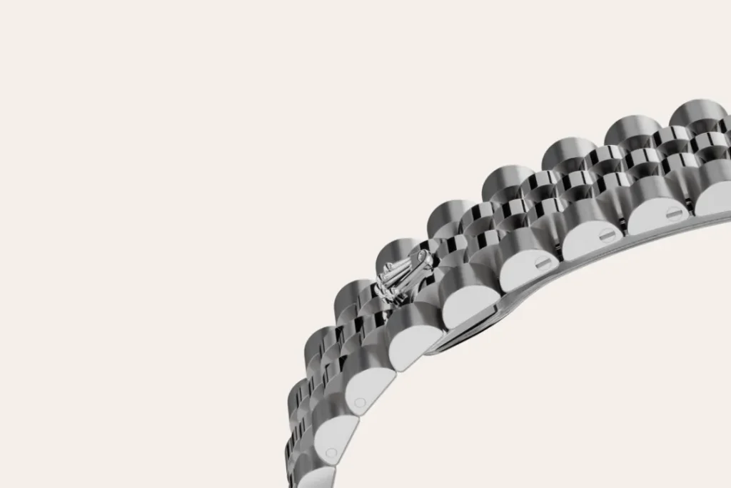 El diseño, desarrollo y producción de los brazaletes y cierres Rolex, así como las estrictas pruebas que deben superar, requieren la tecnología más avanzada. Al igual que sucede con los demás componentes del reloj, los controles estéticos realizados por nuestros expertos garantizan una belleza impecable. El Jubilee, un brazalete fluido y confortable de eslabones de cinco elementos de metal, se creó específicamente para el lanzamiento del modelo Oyster Perpetual Datejust en 1945.